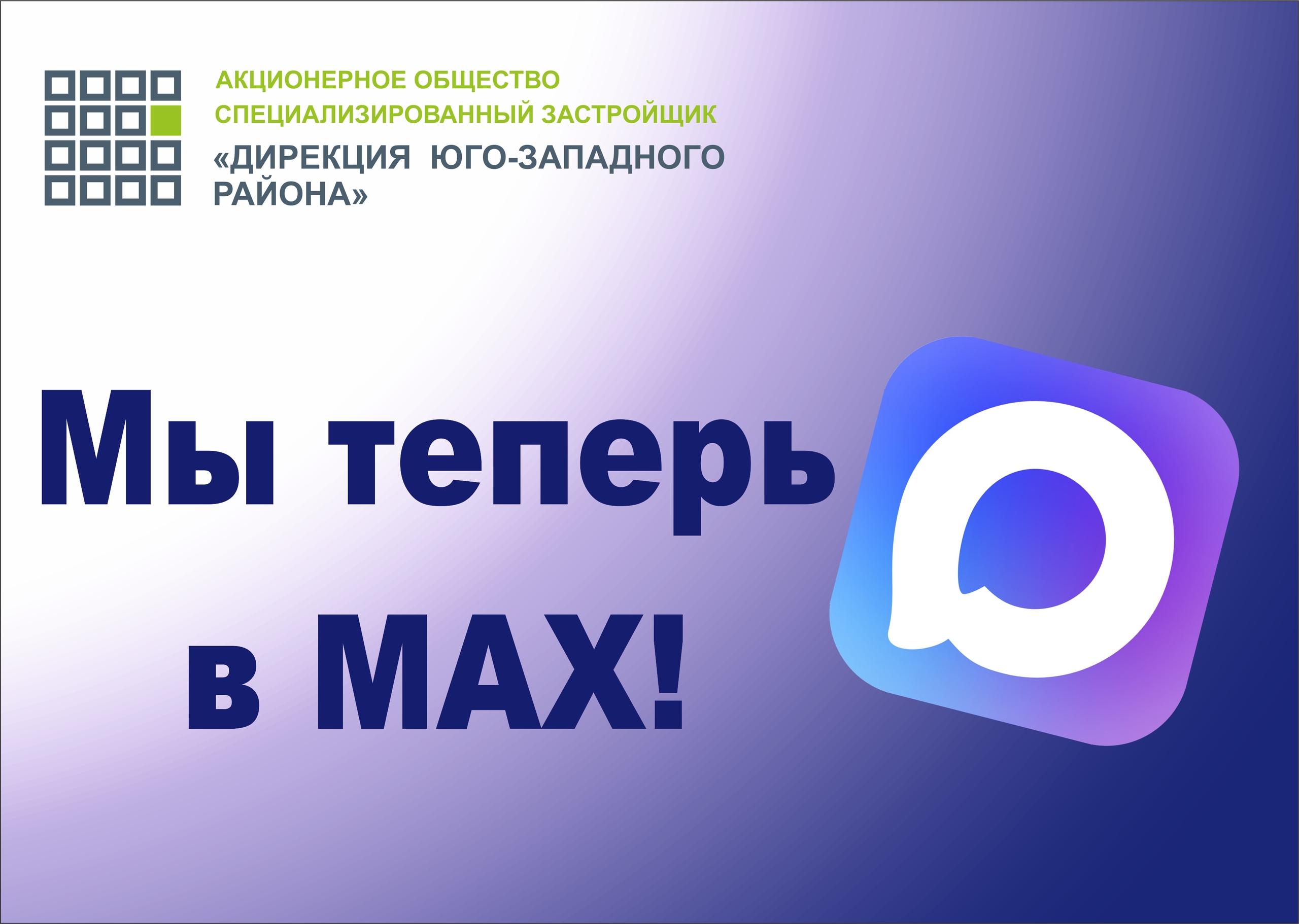 В мессенджере MAX появился официальный канал АО СЗ "Дирекция ЮЗР".